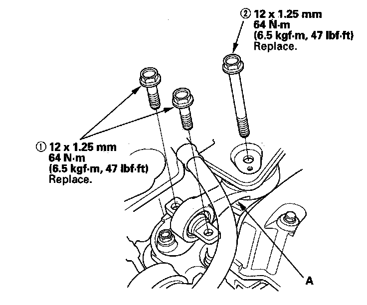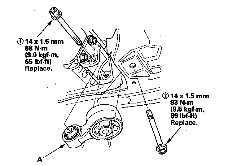 Lower Torque Rod Replacement1. Loosen the upper torque rod mounting bolt (A).