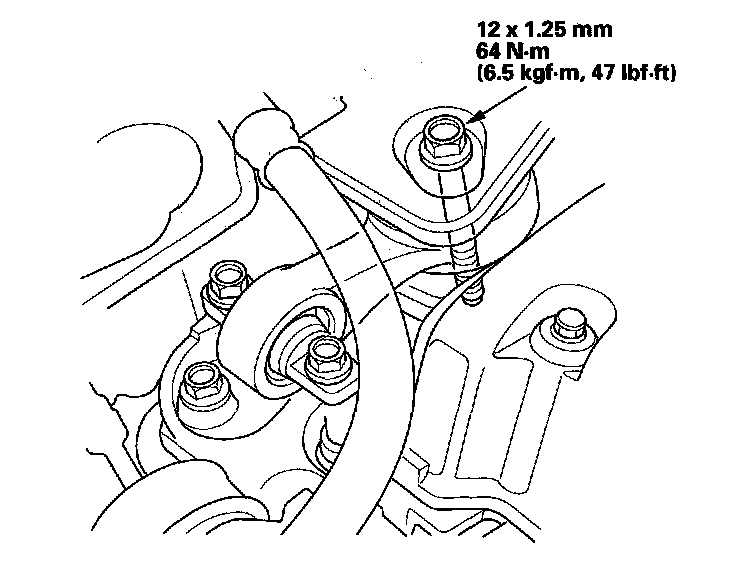 9. Raise the vehicle on the lift to full height, and tighten the front mount mounting bolt.