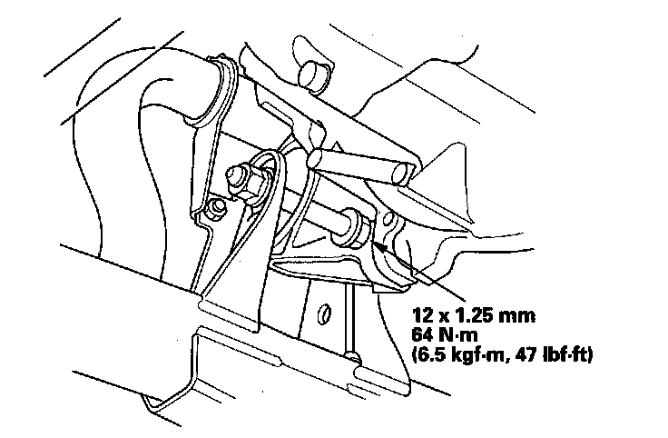 6. Raise the vehicle on the lift to full height, and tighten the front mount mounting bolt.