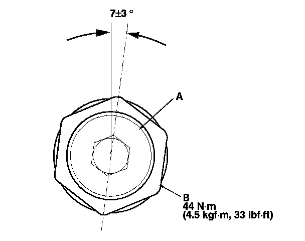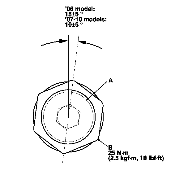 5. Retighten the rack guide screw to 3.9 N-m (0.4 kgf-m, 2.9 lbf-ft), then back it off to the specified angle.
