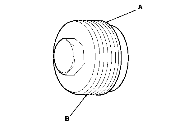 3. Remove the old sealant from the rack guide screw (A), and apply new sealant (Three Bond 1215 or Loctite 5699) to the middle of the threads (B).