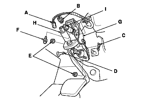 5. Remove the clutch pedal position switch (H) and the clutch interlock switch (I).