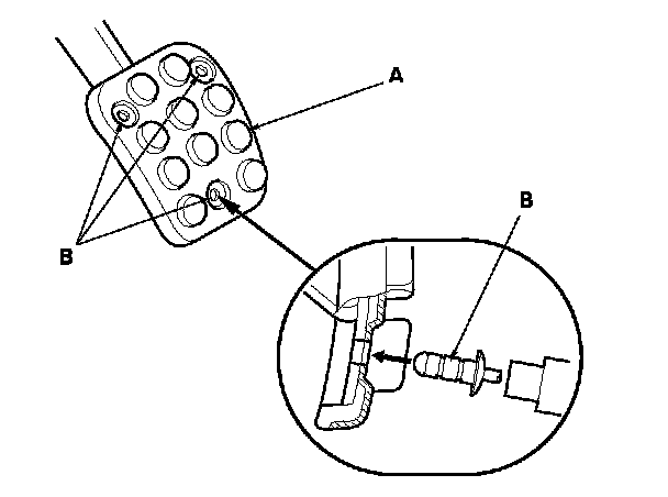 5. Install the clutch pedal plate (A) with the rivets (B) firmly.