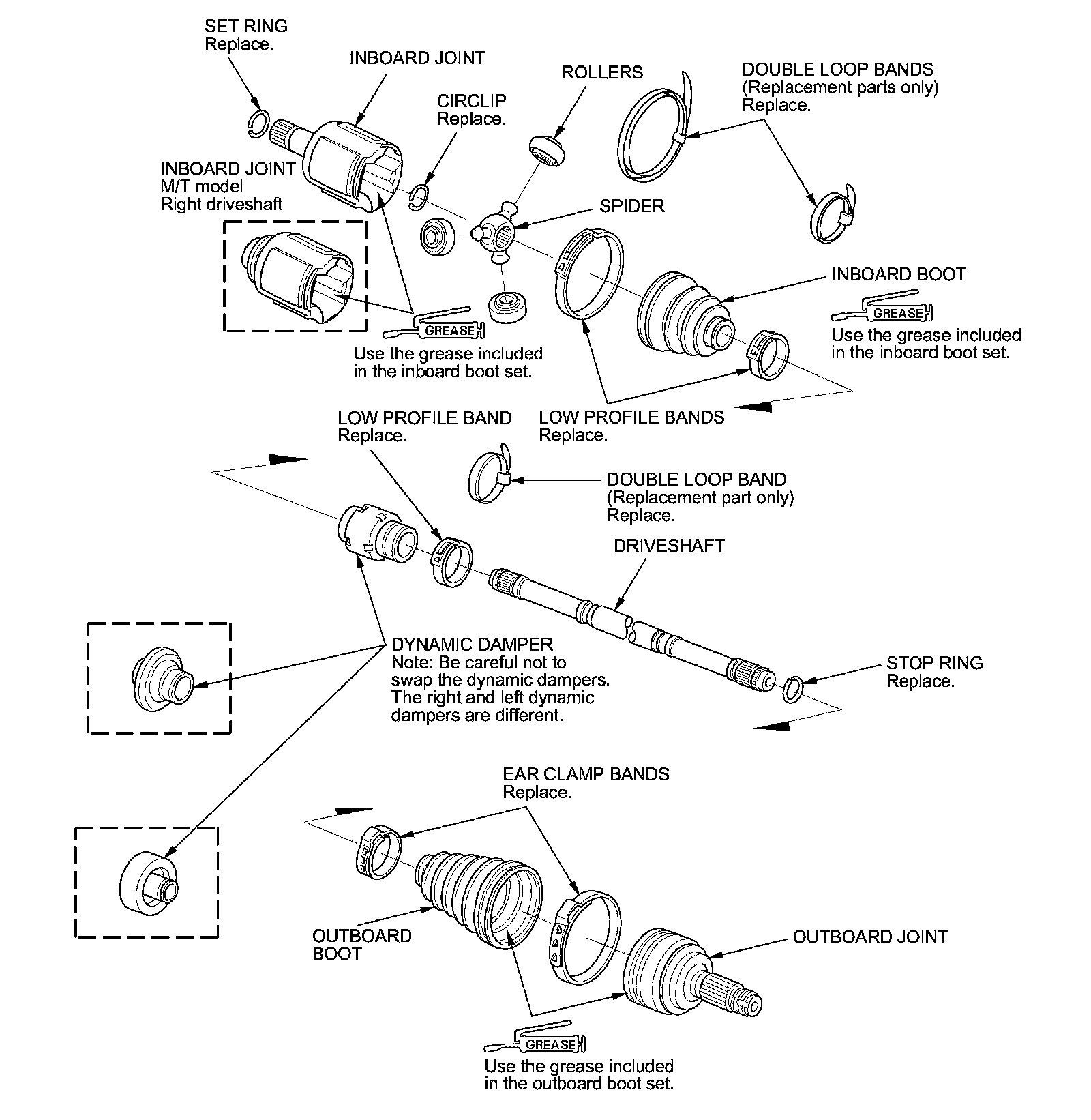6. Pack the inboard joint with the joint grease included in the new inboard boot set.