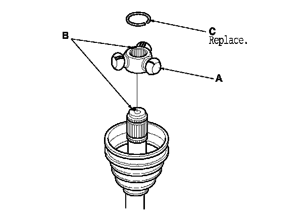 4. Install a new circlip (C) into the driveshaft groove. Always rotate the circlip in its groove to make sure it is fully seated.