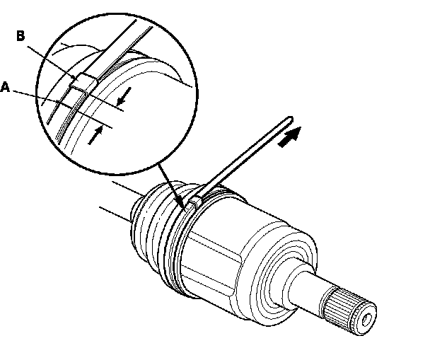 4. Install the stop ring (A) into the driveshaft groove (B).