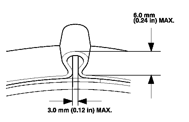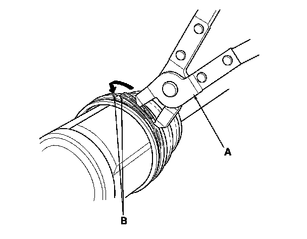 12. Close the ear portion (A) of the band using commercially available seal clamp tool (Kent-Moore J-35910 or equivalent) (B).