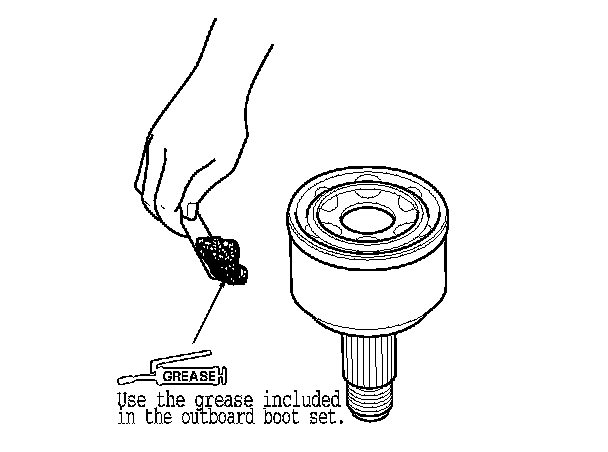 5. Pack about 35 g (1.2 oz) of grease included in the new outboard boot set into the driveshaft hole in the outboard joint.