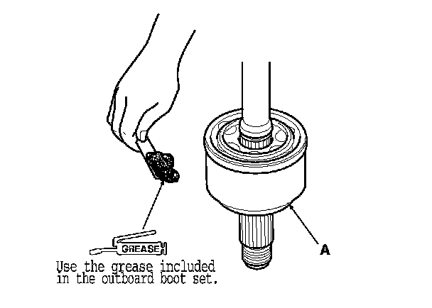 9. Pack the outboard joint (A) with the remaining grease included in the outboard boot set.