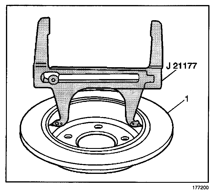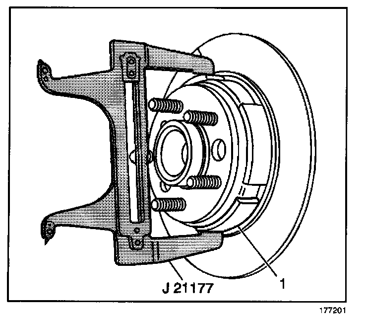 1. Set the J 21177-A so that it contacts the inside diameter of the rotor (1).