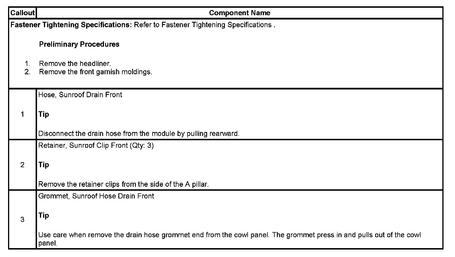 SUNROOF DRAIN HOSE REPLACEMENT - FRONT