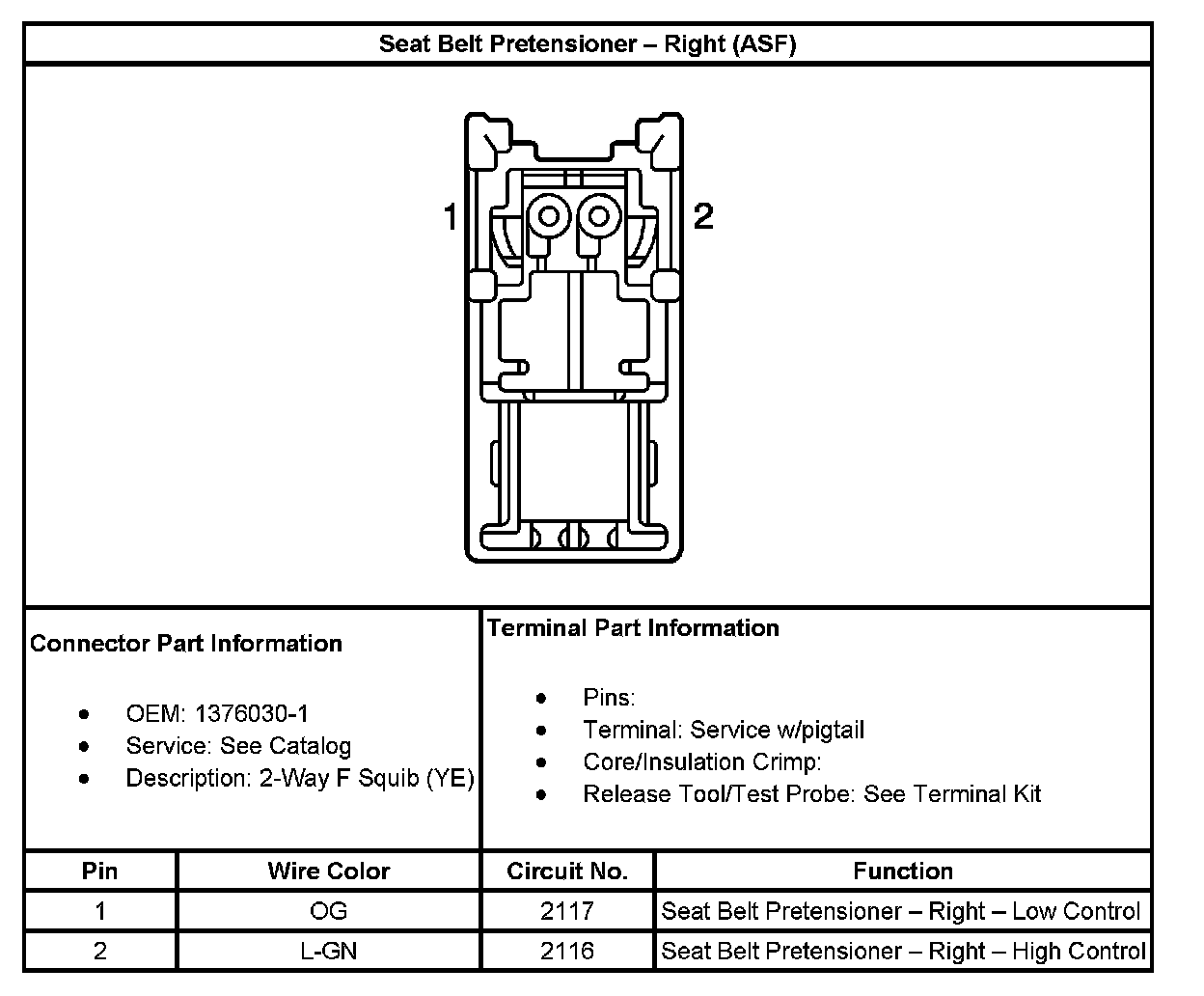 Seat Belt Pretensioner - Right (Without RPO Code ASF):