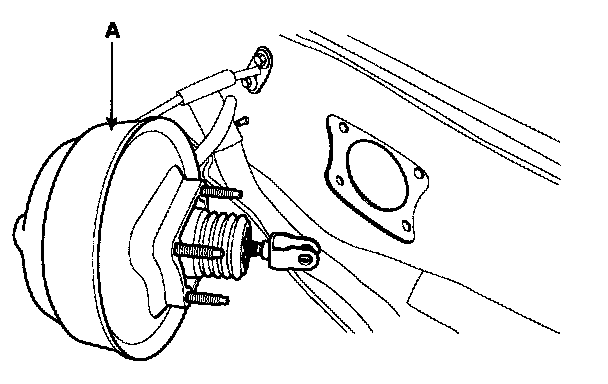 1. Disconnect the vacuum hose (B) from the brake booster (A).