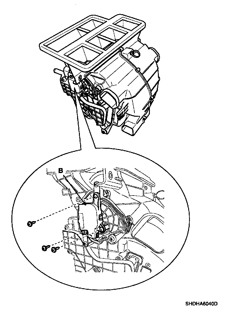 4. Loosen the mounting screws and then remove the mode control actuator (B).