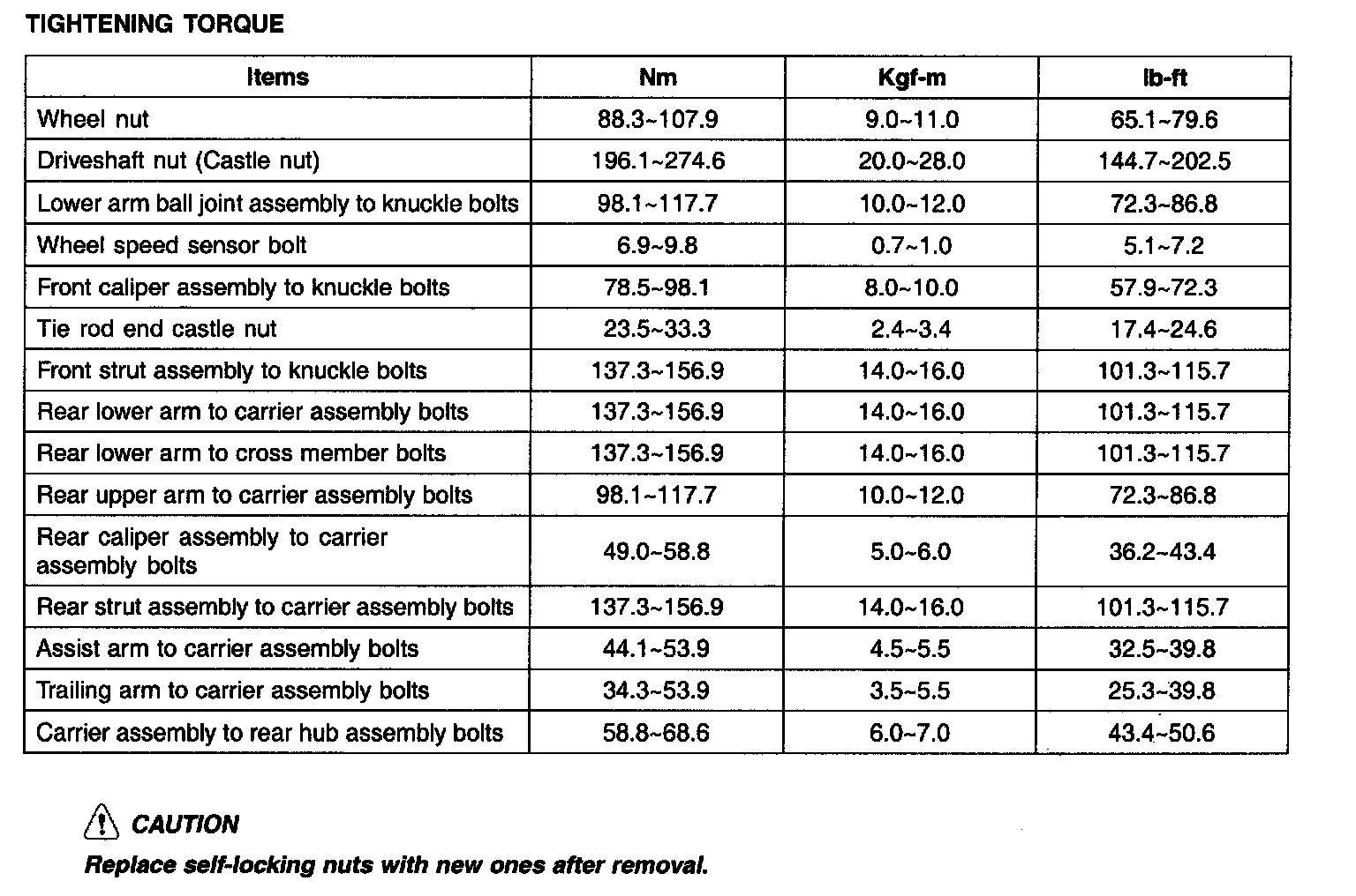 TIGHTENING TORQUE: