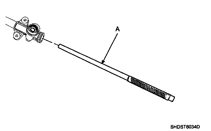 1. Apply the grease to rack year teeth and then insert the rack bar (A) into the rack hosing.