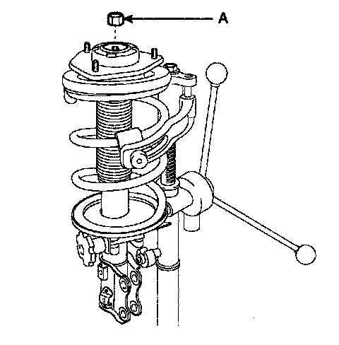 3. Remove the insulator assembly (A) and the strut bearing (B).