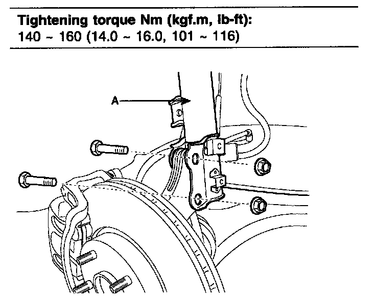 Tightening torque Nm (kgf-m, lb-ft): 90-110 (9.0-11.0, 65-80)