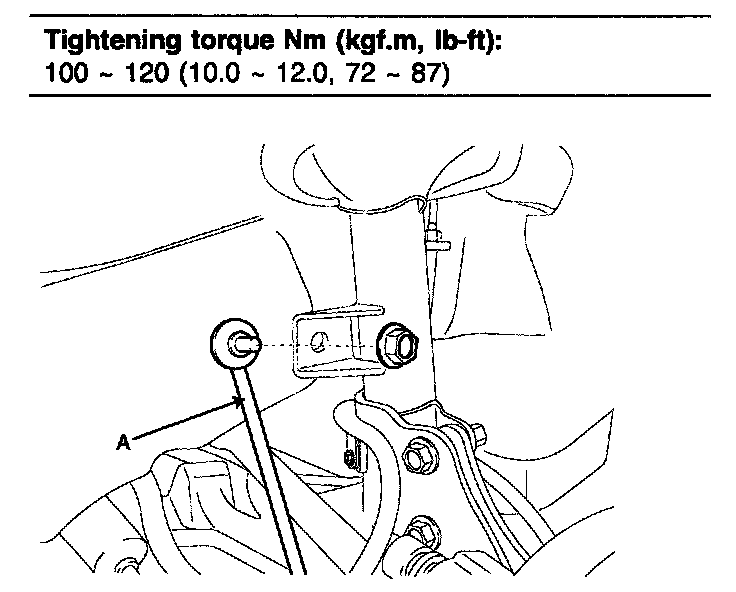 3. Install the stabilizer link (A) to the front strut assembly and then tighten the nut.