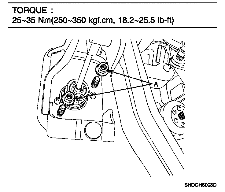 5. Install the clutch pedal mounting nuts (A-2ea).