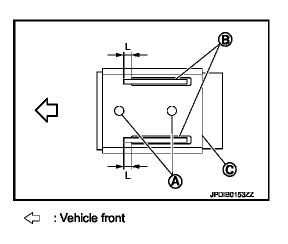 - Check the lapping length "L" of sub-bracket (B) and slide plate (C).