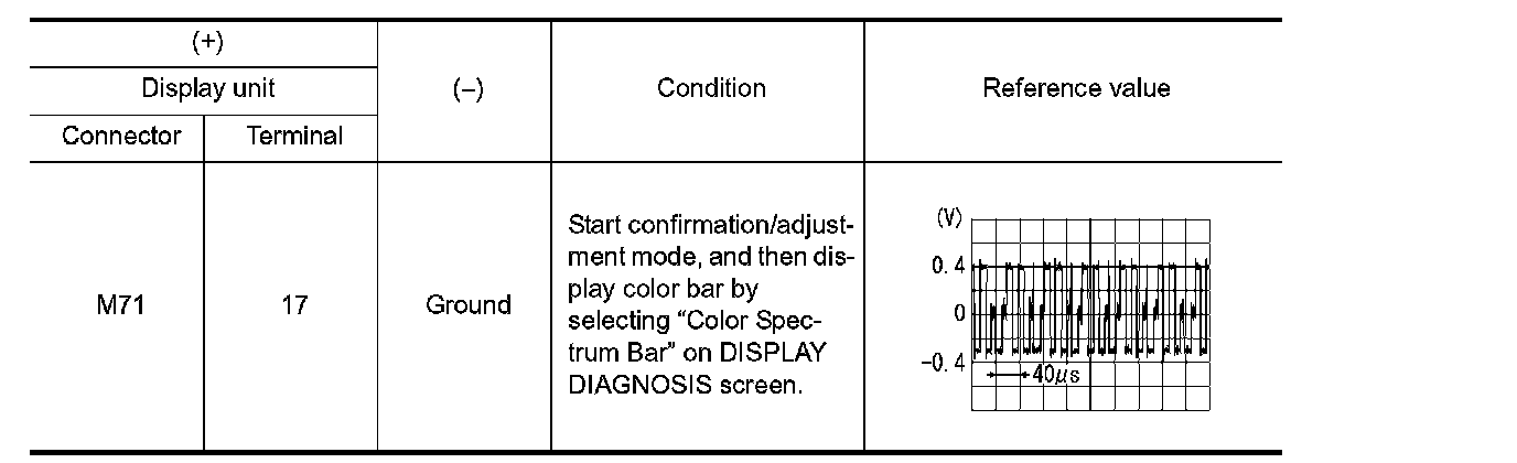 3. Check signal between display unit harness connector and ground.