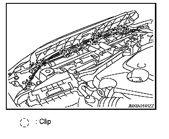 In the case that only radiator core support ornament is removed (front bumper is not removed), remove them according to the procedures shown below.