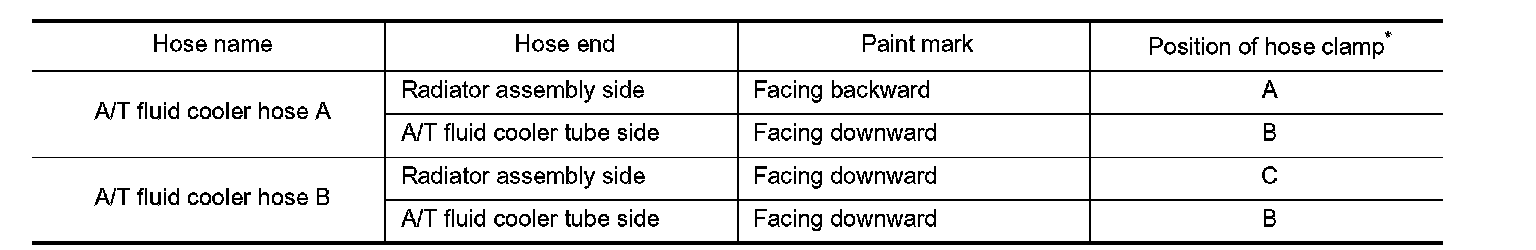 - Refer to the following when installing A/T fluid cooler hoses.