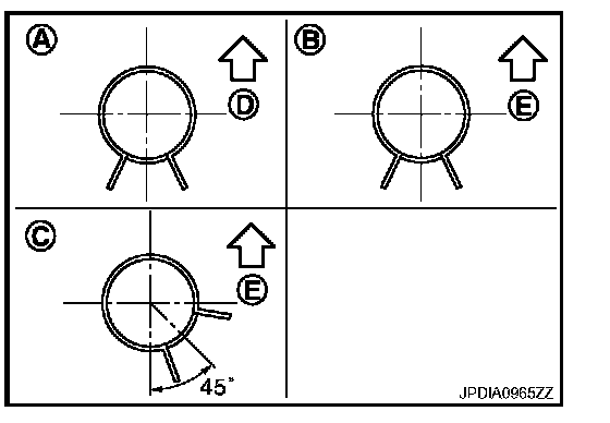 - When installing hose clamps center line of each hose clamp tab should be positioned as shown in the figure.