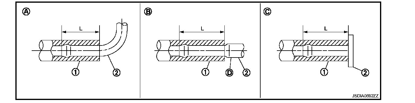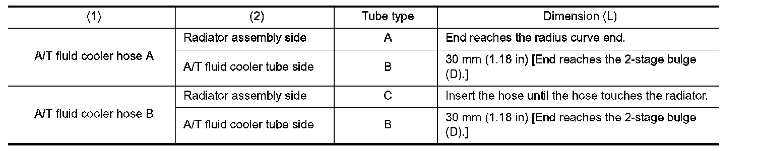 - Insert A/T fluid cooler hoses according to dimension (L) described below.