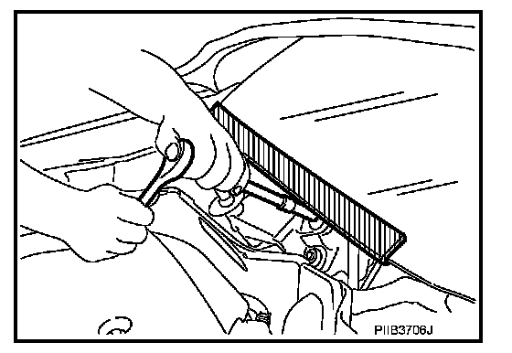 When performing the procedure after removing cowl top cover, cover the lower end of windshield with urethane, etc.