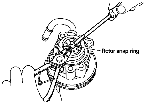 4. Remove rotor snap ring using a snap ring plier, and remove pulley from body assembly.