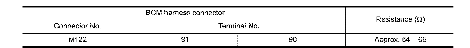 2. Check the resistance between the BCM harness connector terminals.