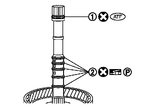 7. Remove O-ring (1) and seal rings (2) from input clutch assembly.