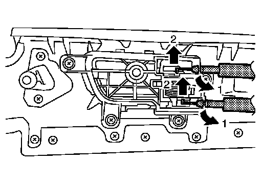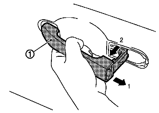 6. Slide outside handle (1) toward rear of vehicle and pull to remove outside handle.