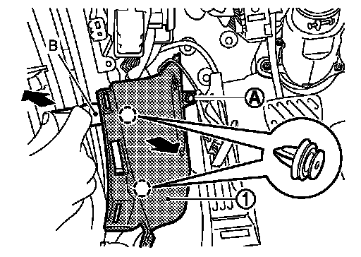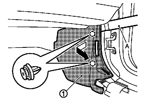 3. Insert remover tool (A) between dash side finisher RH (1) and body side panel to disengage clips.