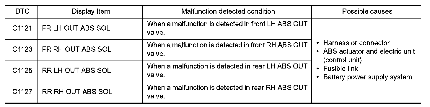 C1121, C1123, C1125, C1127 ABS OUT VALVE SYSTEM