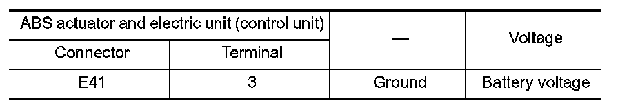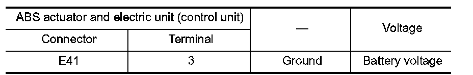 3.Check voltage between ABS actuator and electric unit (control unit) harness connector and ground.
