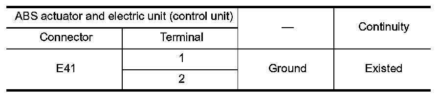 2.Check continuity between ABS actuator and electric unit (control unit) harness connector and the ground.
