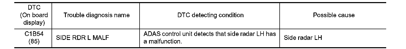 C1B54 SIDE RADAR LEFT MALFUNCTION