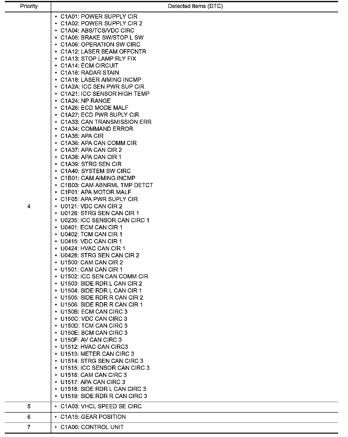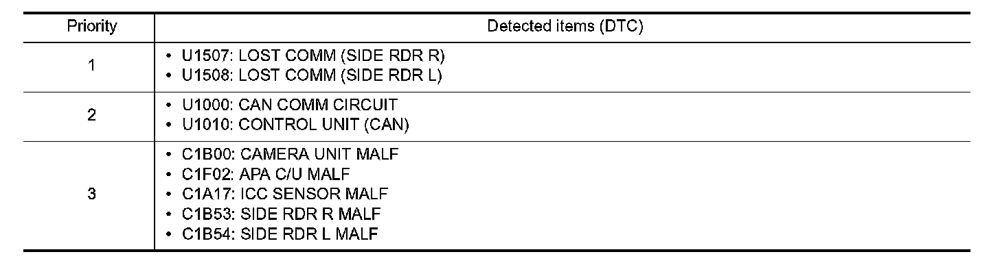 If multiple DTCs are detected simultaneously, check them one by one depending on the following DTC inspection priority chart.