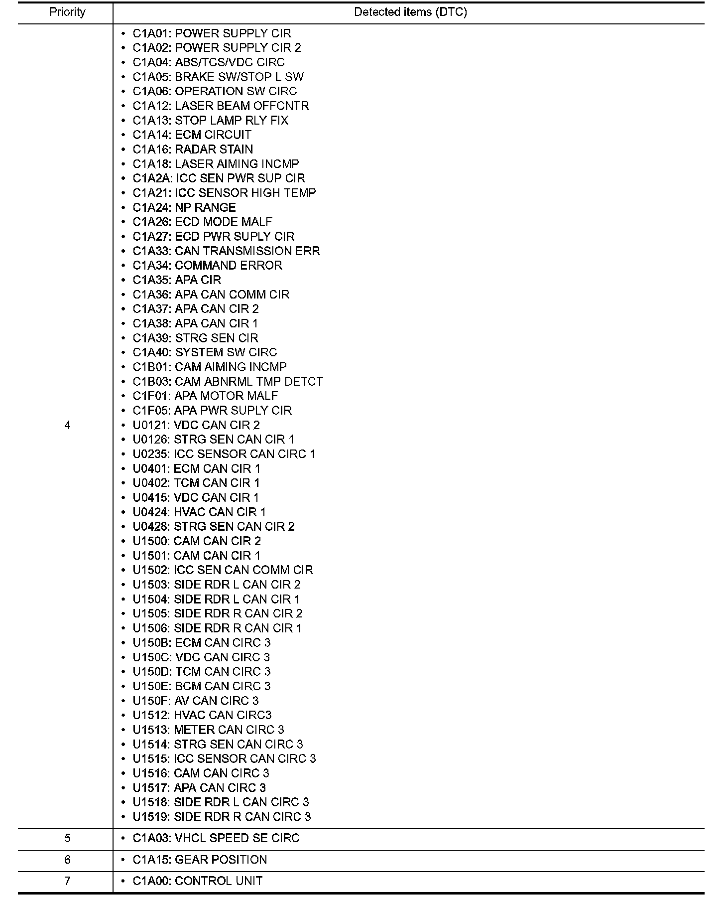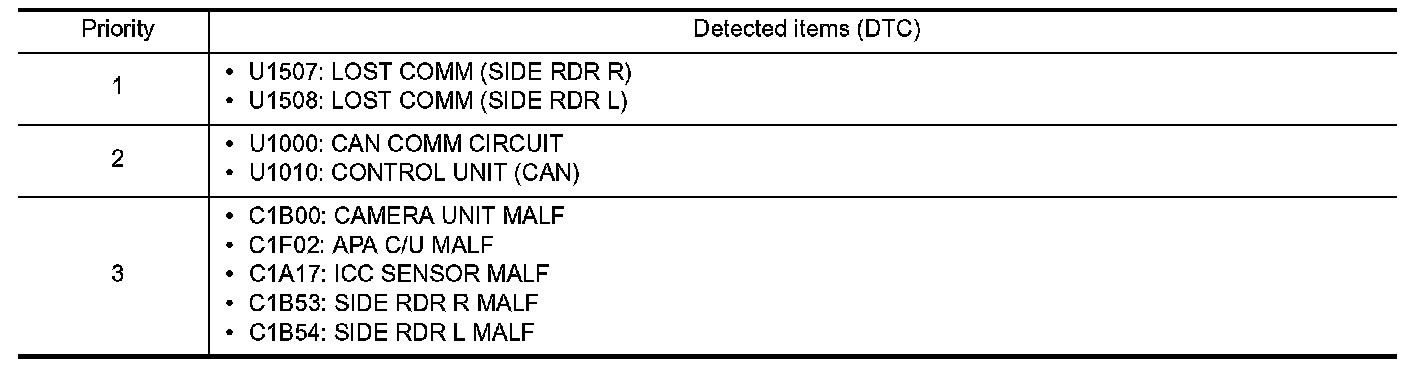 If multiple DTCs are detected simultaneously, check them one by one depending on the following DTC inspection priority chart.