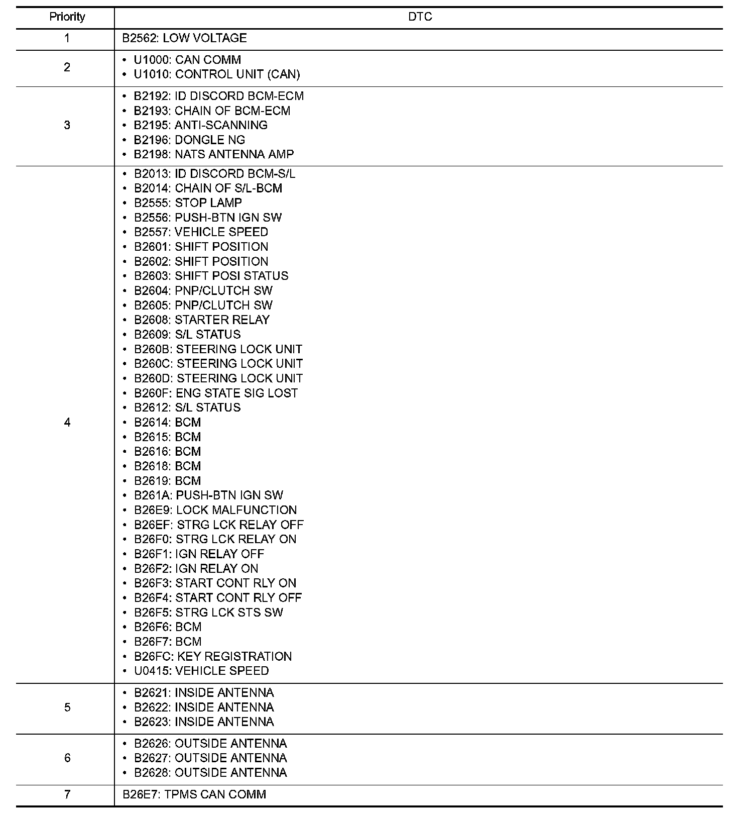 DTC Inspection Priority Chart