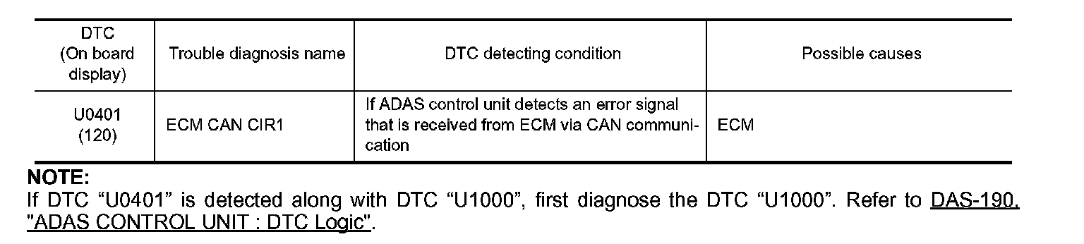 If DTC "U0401" is detected along with DTC "U1000", first diagnose the DTC "U1000". DCA.
