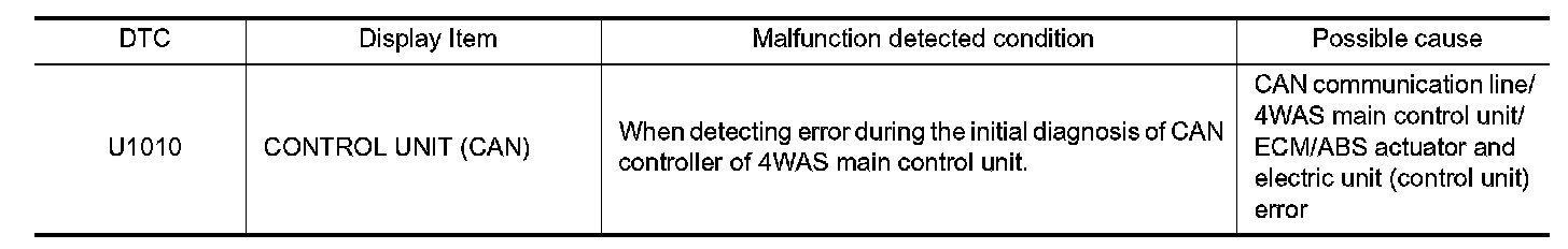 - Never erase the memory (history) of self-diagnosis results when replacing 4WAS main control unit after diagnosis.