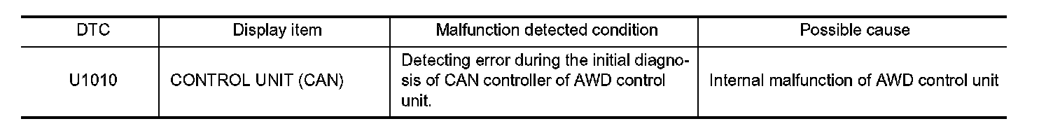 Check AWD control unit harness connector for disconnection and deformation.