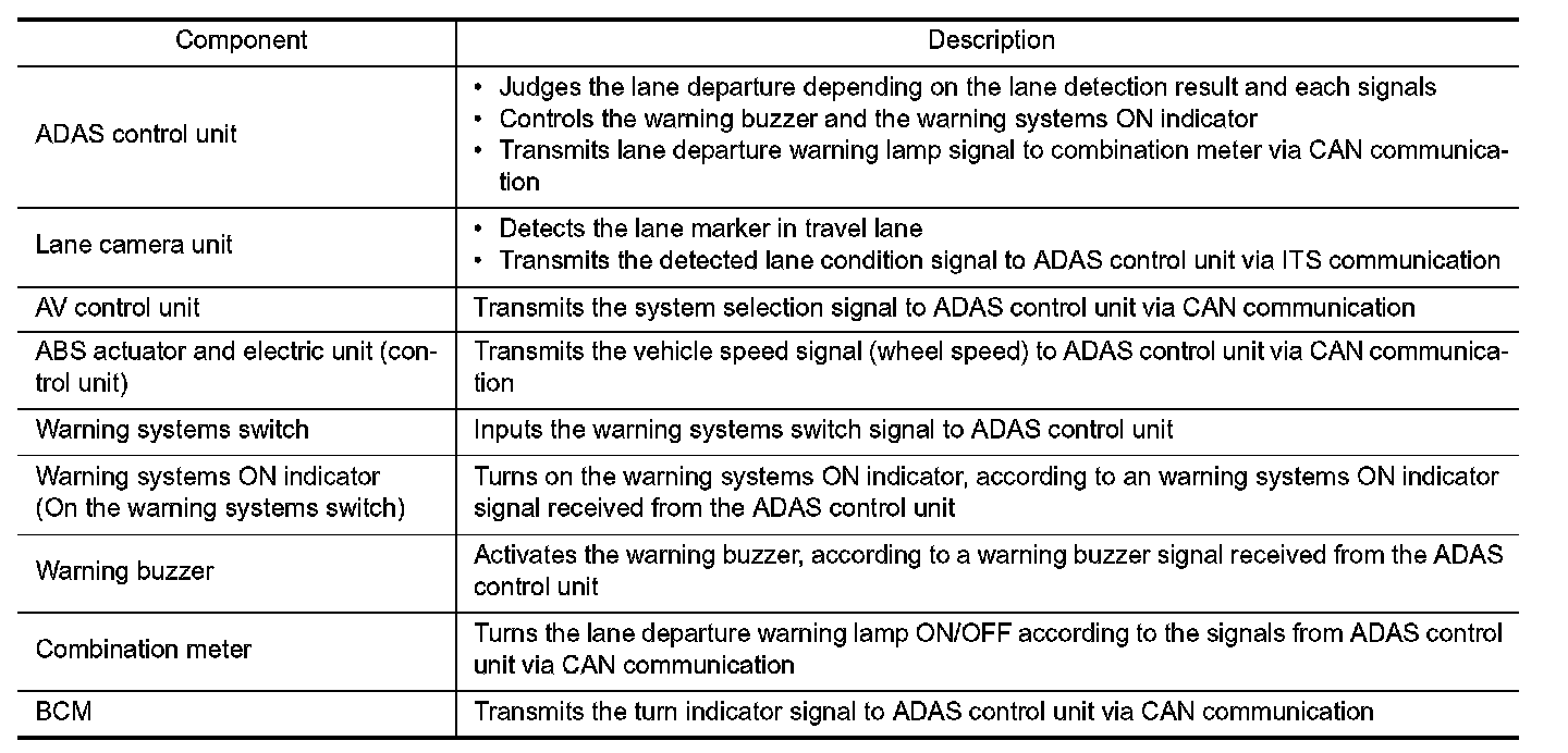 LANE DEPARTURE WARNING (LDW) SYSTEM : Component Description