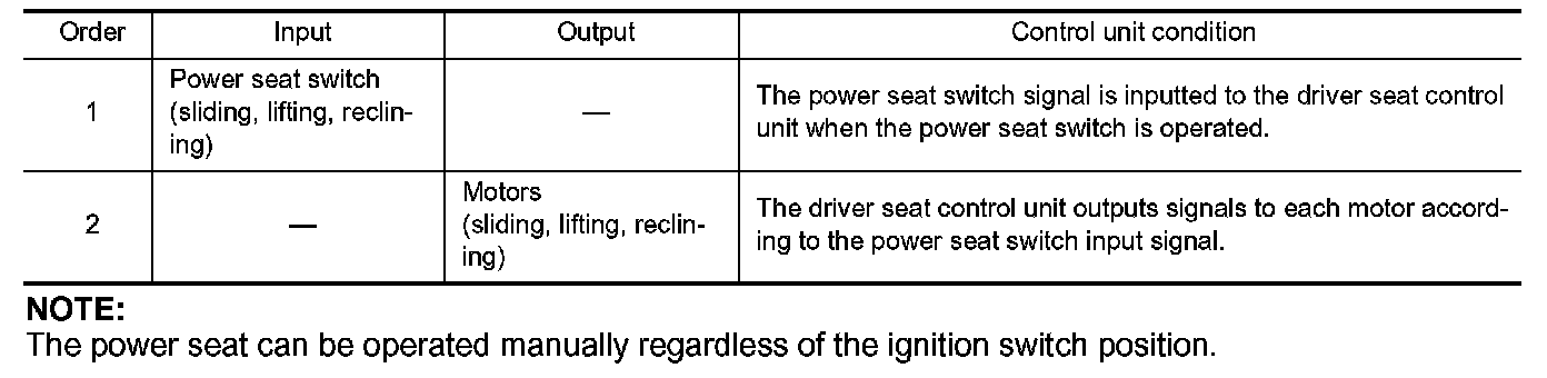 2.Operate power seat switch, tilt & telescopic switch or door mirror remote control switch.