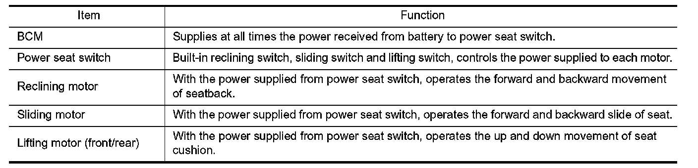 POWER SEAT SYSTEM : Component Description