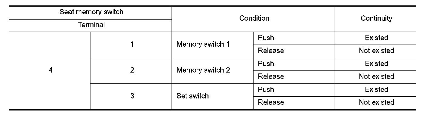 1. CHECK SEAT MEMORY SWITCH SIGNAL